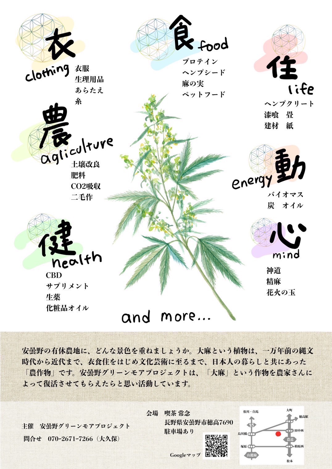 安曇野グリーンモアプロジェクトは、「大麻」という作物を農家さんによって復活させてもらえたらと思い活動しています。